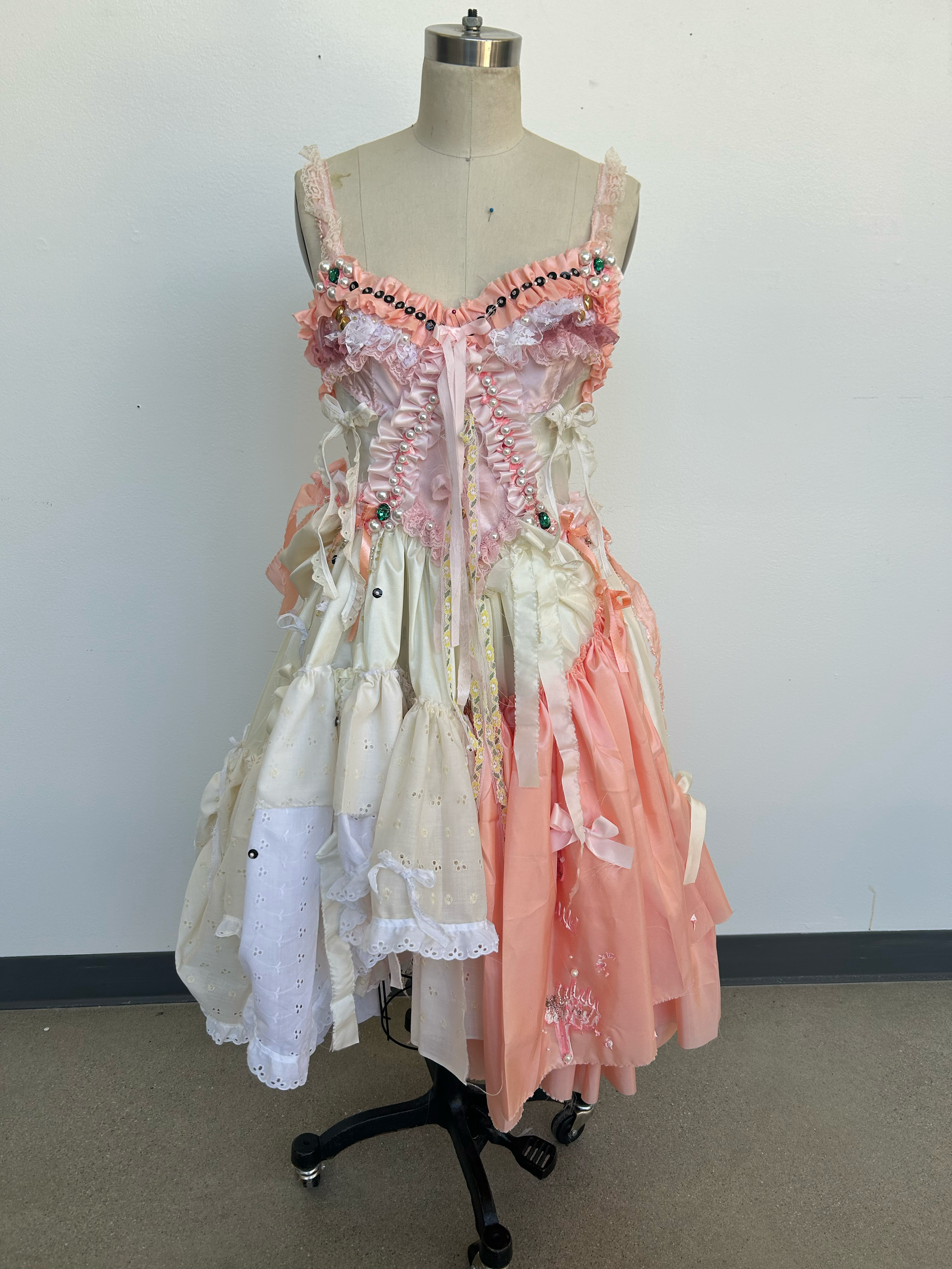 upcycled slip dress, fabric, acrylic paint, embellishments