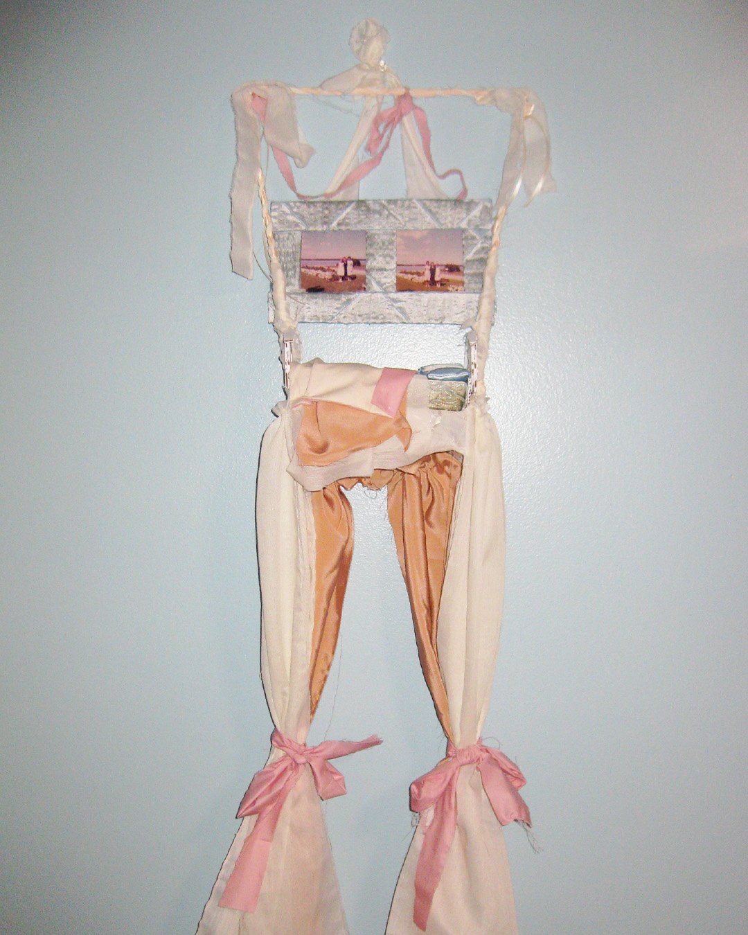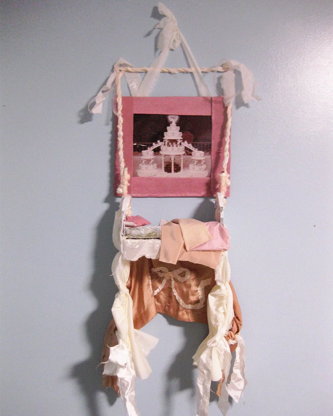 fabric, cardboard, found photograph (10.5 × 12” frame, marked 1976)
