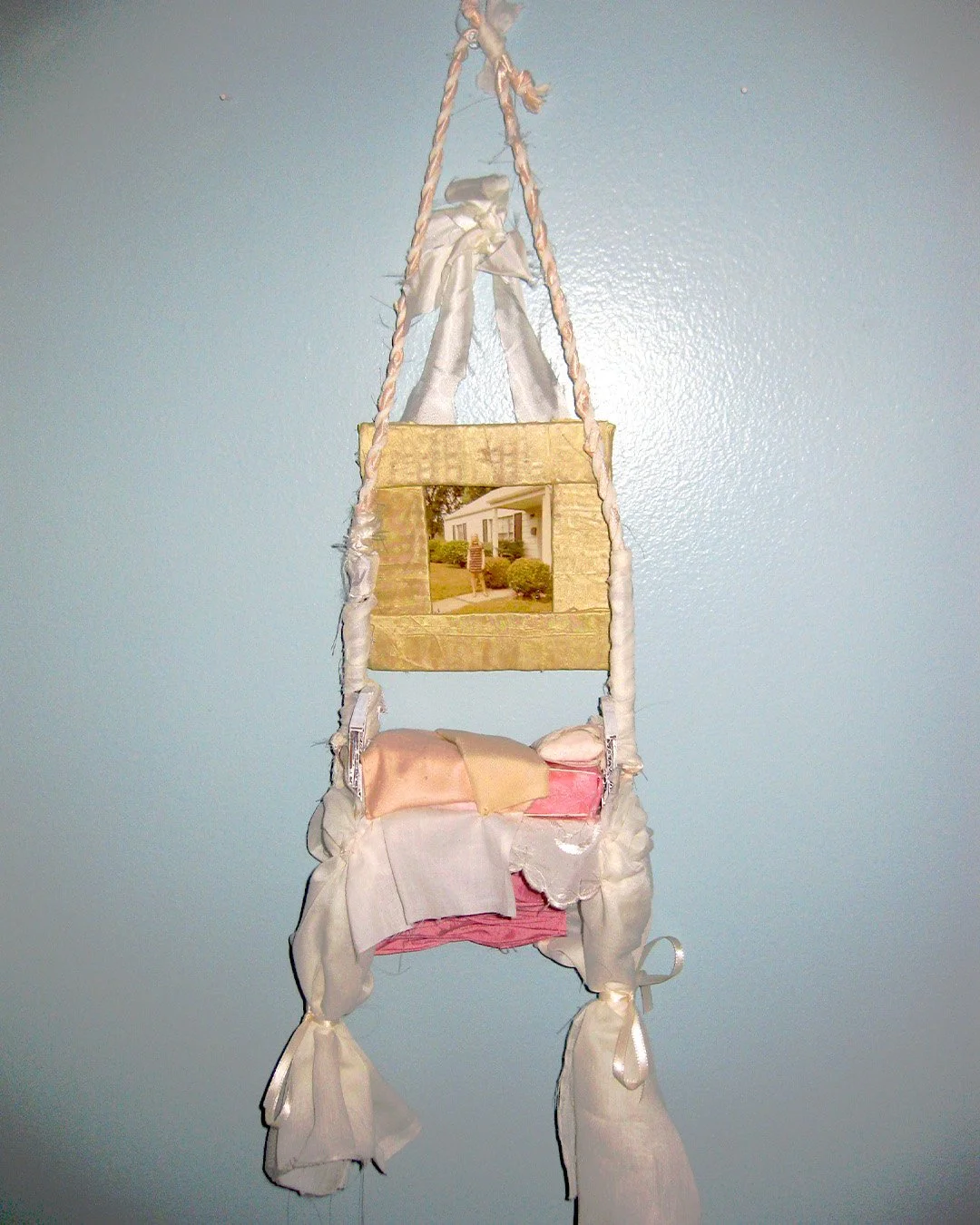 fabric, cardboard, found photograph (9.5 × 5” frame, marked 1964)